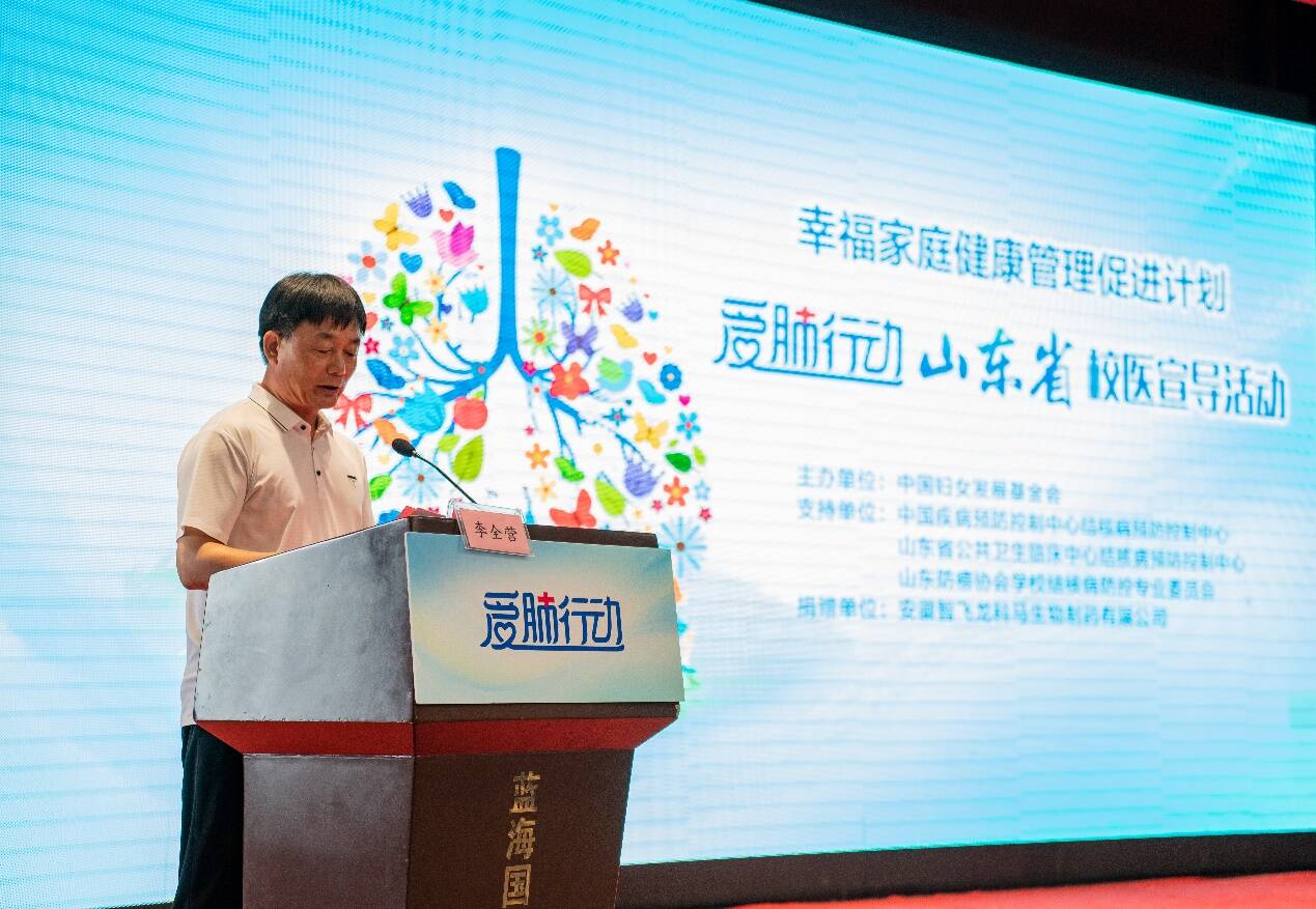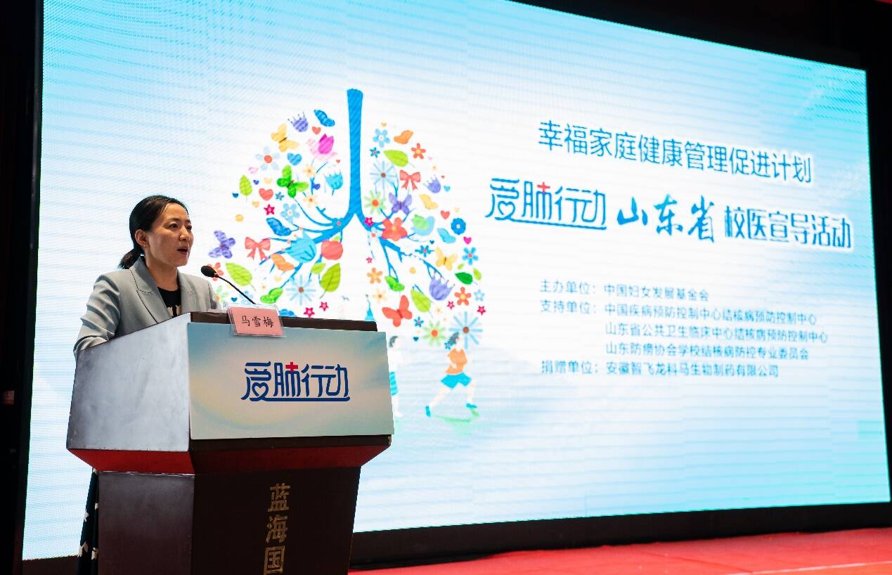 山东省卫生健康委疾控处一级主任科员赵婷在致辞中对本次活动的开展表示肯定和欢迎,感谢国家项目办和省、市教育部门对学校结核病防控工作的支持。同时指出,结核病是国家重点控制传染病,学生人群又是高发人群,各地结防机构和学校一定要高度重视学校结核病防治工作,不断完善联防联控机制,积极落实各项防控措施,借助本次“爱肺行动”宣讲的契机,加大宣传力度,提高宣传效果,强化师生做自身健康“第一责任人”的意识。