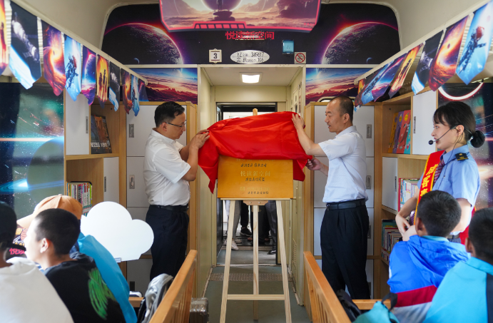 成都客运段打造“彝乡情”公益性“慢火车”品牌,根据沿线学生出行需求,在列车3号车厢设立“通学车厢”,暑假开启在“通学车厢”的基础上,又携手四川省图书馆将上千册精选图书搬上火车,这些书籍涉及人文、历史、旅游多个领域,还有《科幻世界》杂志社捐赠的100余本适合学生阅读的科幻、科技杂志,这节车厢的主题也被定为“酷炫科幻未来”。