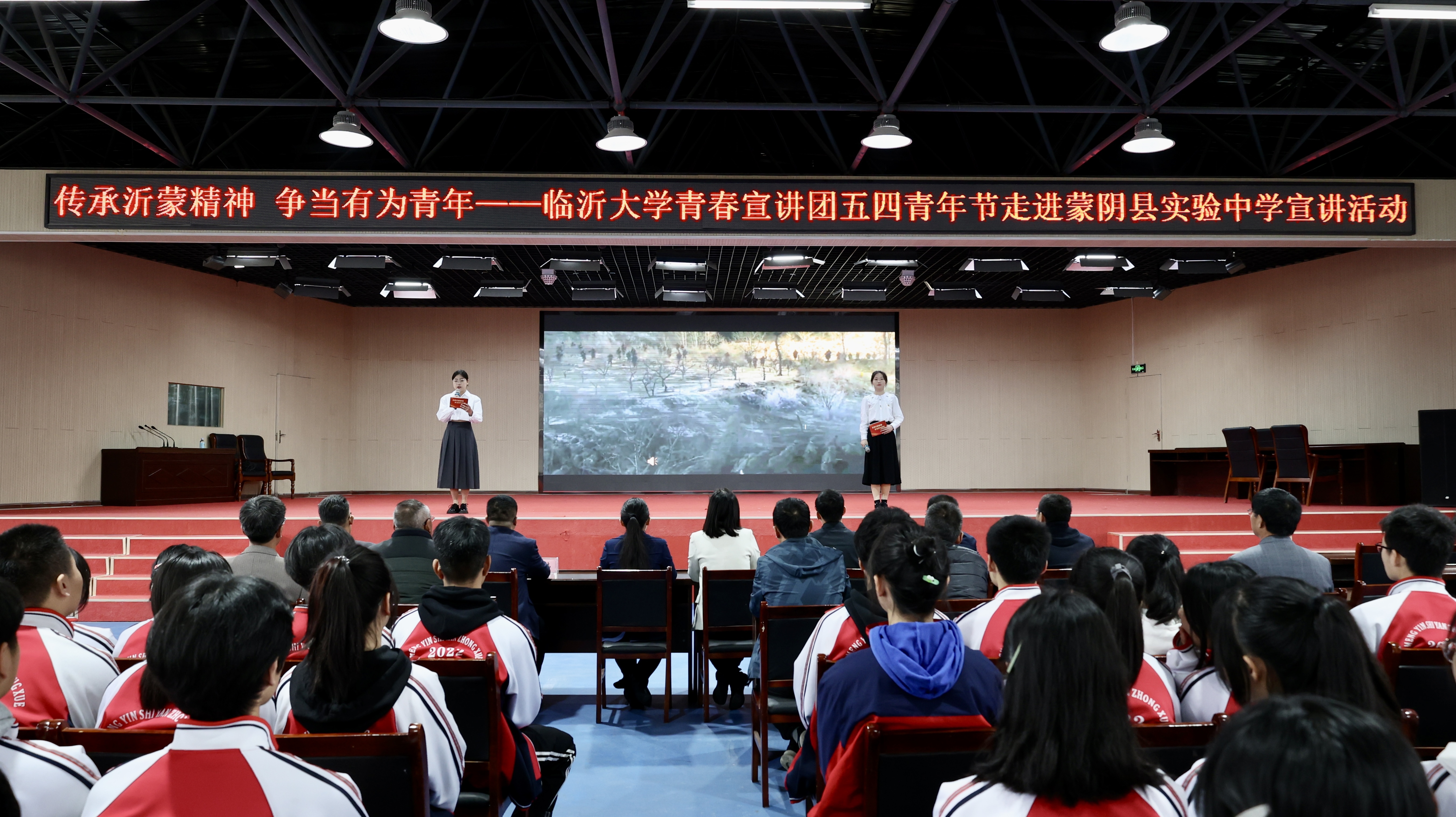 学校扎实推进沂蒙精神育人,开设校本思想政治理论必修课“红色文化与沂蒙精神”等课程,着力打造“红色沂蒙”思政课,以系统、专题性的方式推进沂蒙精神教育。开展沂蒙精神专题团课学习,邀请山东沂蒙党性教育基地特聘教授柴欧林,沂蒙干部学院教授王成娟、刘占全等沂蒙精神研究专家学者,以及“沂蒙母亲”王换于的孙女于爱梅、“沂蒙新红嫂”朱呈镕等为全校学生作专题讲座,将沂蒙红色故事讲深、讲透、讲活,使学生更加深刻地领悟沂蒙精神内涵,明确当代青年弘扬沂蒙精神的路径选择。