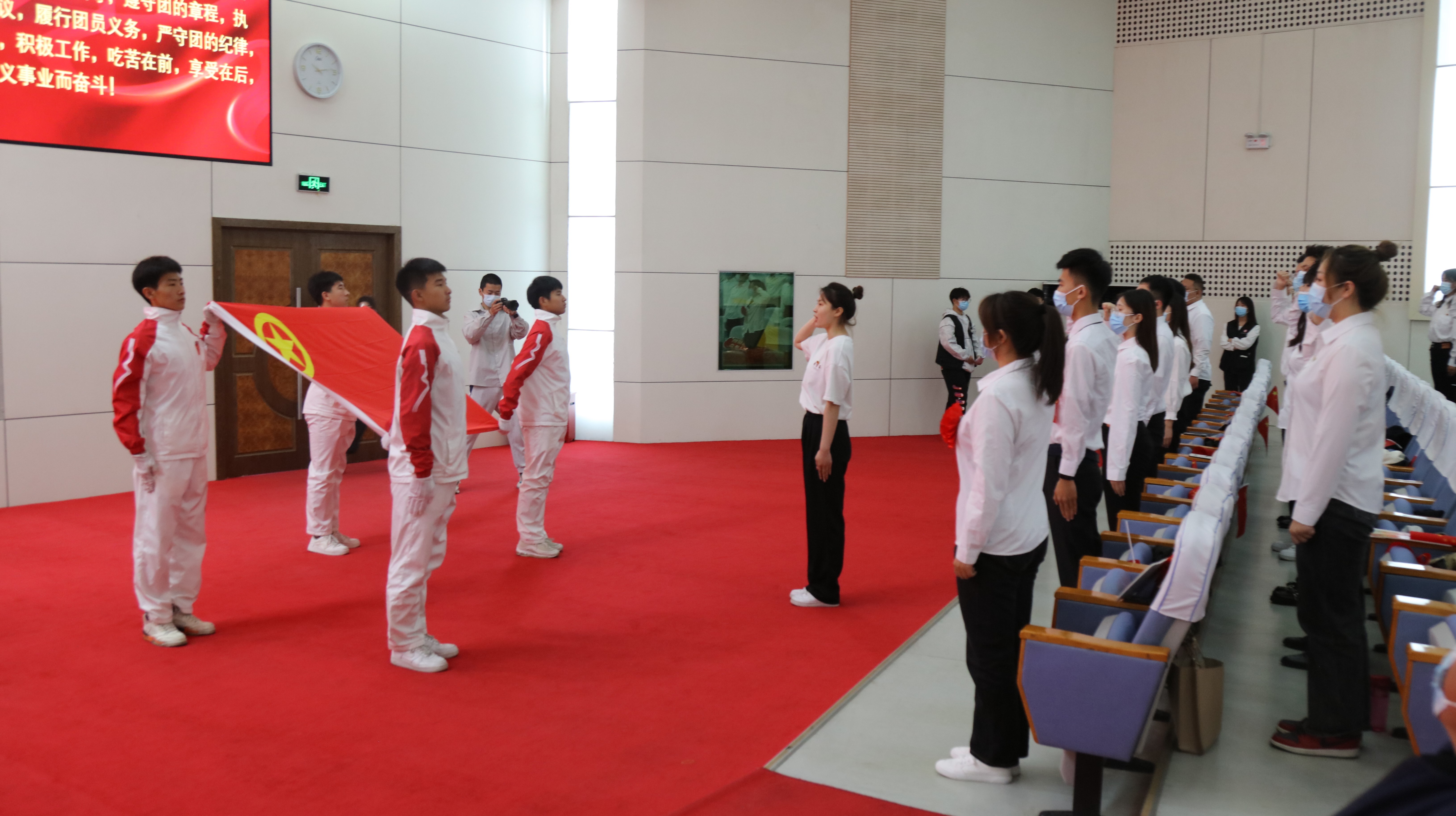 学校把传承红色基因植入团组织建设各领域、全过程,打造系列特色“行走的思政课”。围绕建党百年、建团百年、喜迎党的二十大、学习党的二十大精神等主题开展形式多样、内容丰富的主题教育实践活动,将政治理论学习、价值引领等“规定动作”与学科专业、课堂思政等全面融合,引领青年学生在专业实践中接受思想教育。集中开展“青春心向党·建功新时代”“我与祖国共奋进——国旗下演讲”等活动千余场次。充分挖掘沂蒙革命老区丰厚的红色资源,结合清明节、建党节、建军节、国庆节等重要时间节点,常态化组织学生开展“致敬革命先烈,传承沂蒙精神”户外主题团日活动。联合临沂市宣传部门开展“传承红色基因,践行沂蒙精神,讲好临沂故事”活动,坚定学生理想信念。