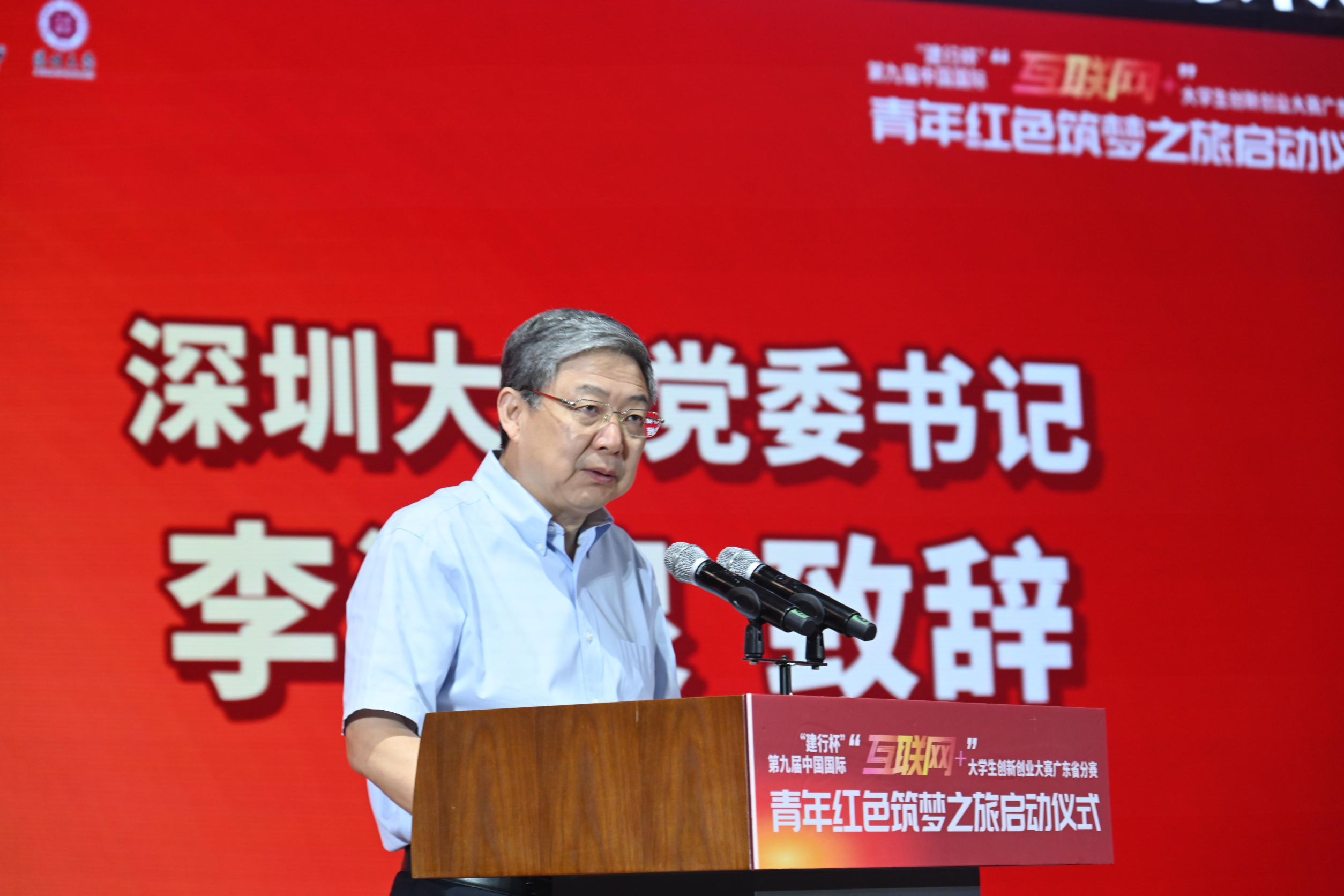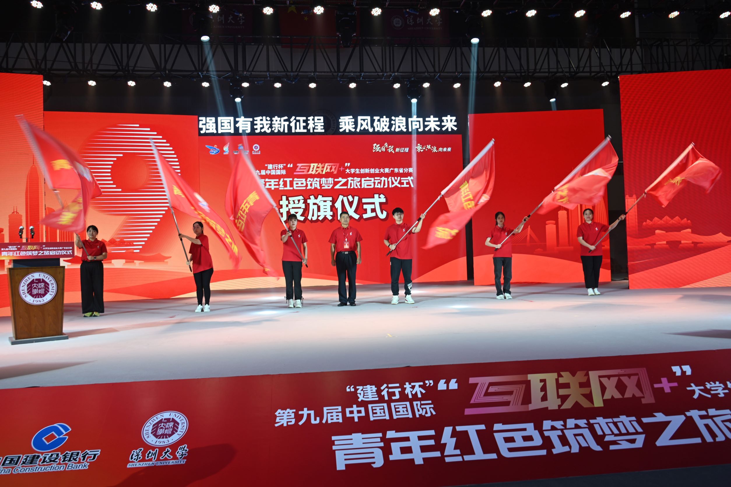 启动仪式上,深圳大学党委书记李清泉等嘉宾共同按动启动装置,宣布本届“红旅”活动正式启动。广东省分赛组委会为此次大赛的6个小队授旗。