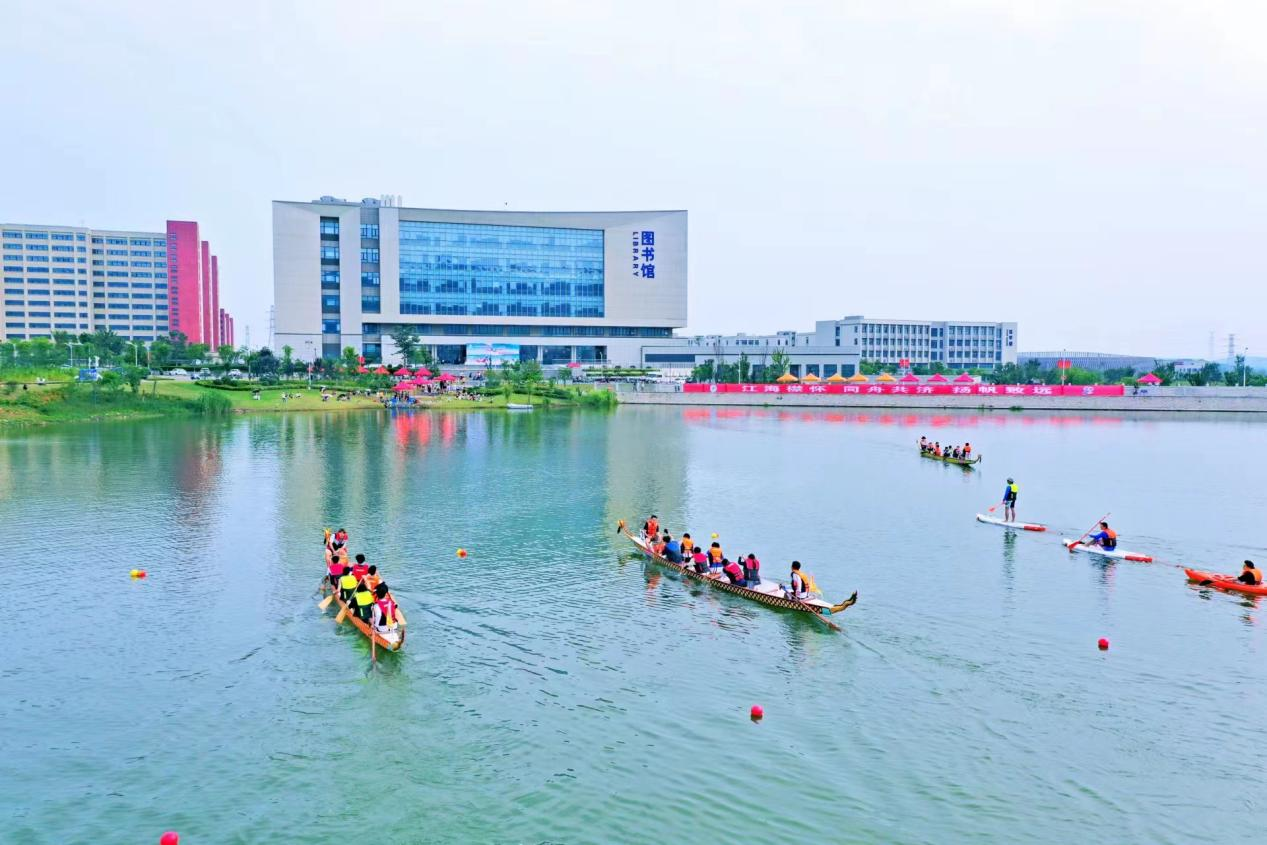 当天下午,江苏科技大学“龙游端午”首届师生龙舟邀请赛在长山校区海韵湖隆重举办。以龙舟点睛仪式表达美好祈愿后,龙舟如离弦之箭飞出。