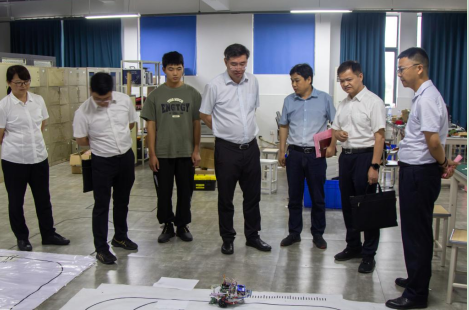 会后,杨英武一行参观考察了智能制造工业中心专业实训室,详细了解了学院办学条件、教学实训场地建设等情况。