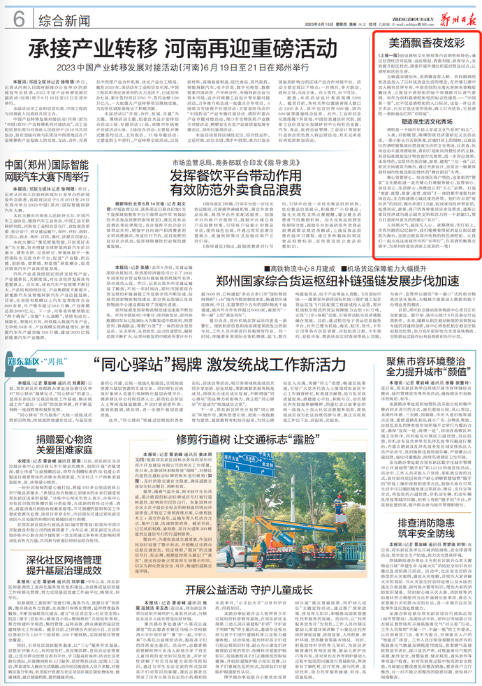 本报推出“加快建设国际消费中心城市”系列报道,对郑州打造特色商业街区、拓展消费场景、点燃文旅消费、提质文体消费、激活大宗消费、做强会展经济、提升消费国际范儿等七项重点工作进行深入报道。