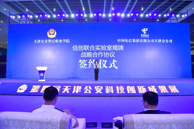 5月30日,第四届天津公安科技创新成果展在梅江会展中心开幕。活动当天,天津公安警官职业学院与中国电信天津分公司的公安云电脑和信创适配实验室举行合作签约挂牌仪式。未来双方将在合作框架下,紧紧围绕学科专业建设资源共享、科研项目共研、实验室共建、人才共育等方面深化合作;同时携手为天津公安大数据应用新生态建设的可持续发展贡献力量,为天津全面建设社会主义现代化大都市提供坚实信息化建设基础保障。