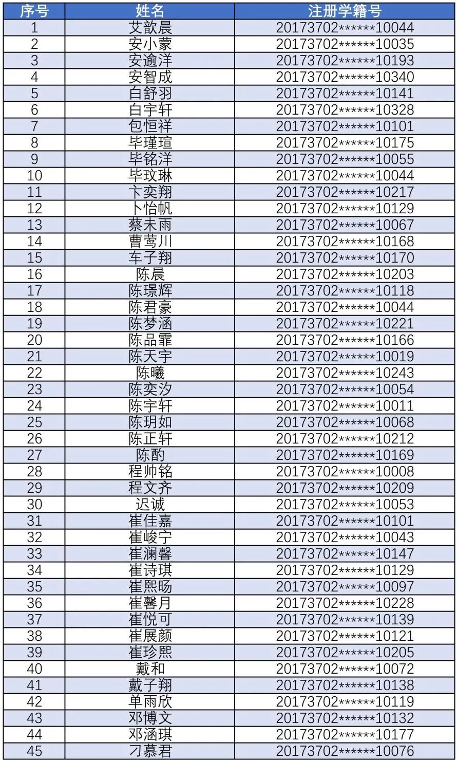 录取名单如下: