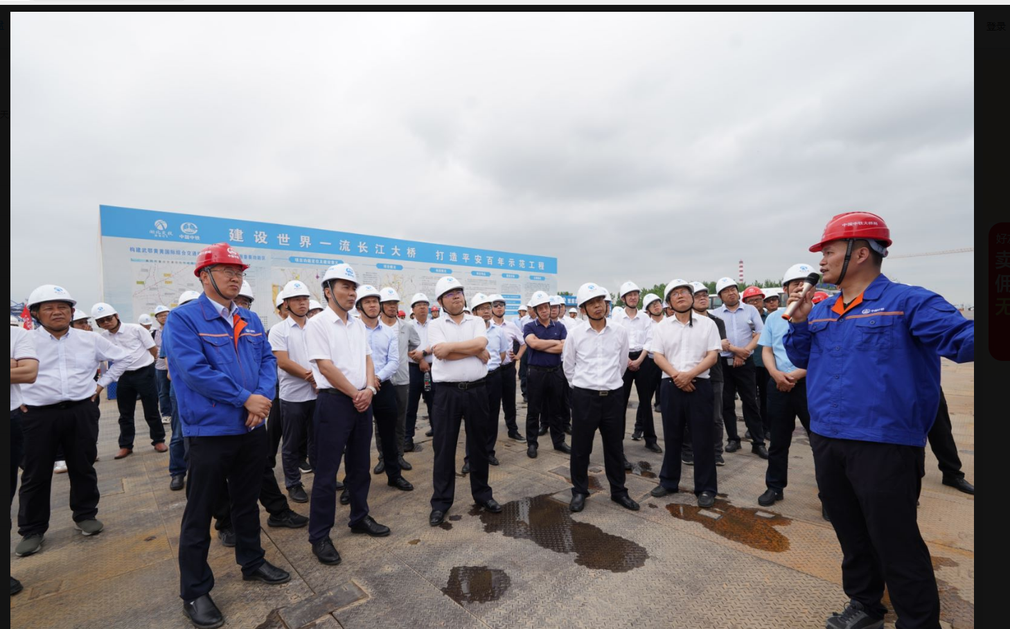与会人员观摩了鄂黄第二过江通道燕矶长江大桥主桥施工现场。燕矶长江大桥是湖北省“十四五”新一轮长江大桥建设首个开工项目。项目开工以来,湖北交投燕矶长江大桥有限公司紧紧围绕“建世界一流长江大桥、创百年品质示范工程”建设目标,坚持“世界级桥梁、国优奖标准、品质样板工程”三大定位,主动对标对表国内外品质示范项目,积极推广“标准化、工厂化、自动化、装配化、机械化、智能化”六化建设,以高品质设计引领、高效率管理服务、高质量建设标准、精细化施工水平,深入推进平安百年品质工程创建。