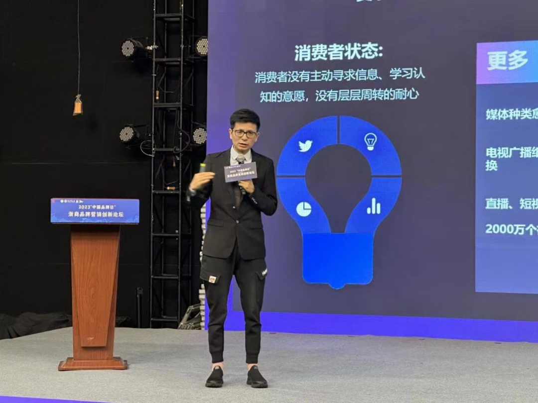 论坛专家主旨演讲环节,浙商大创业园董事长、浙商研究院副院长赵浩兴教授强调,未来的新营销模式,必定是品牌化、数智化、场景化的叠加,品牌营销的内核是品德,比AI更重要的是ai(爱),应着力营造打动人的“心”营销场景。他还为数字经济时代的浙商营销模式创新建设性地提出六大方向:网络营销的迭代、大数据支撑的精准营销、沉浸化互动化的体验营销和基于个性消费的定制营销、基于生态链聚的联盟营销和基于内容引爆的IP营销。