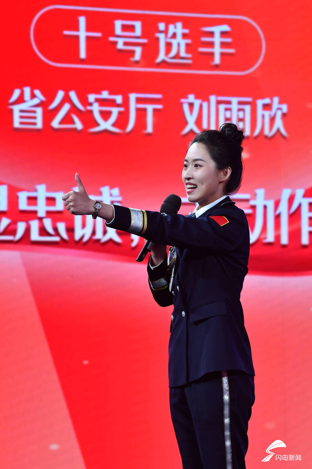 图为山东省公安厅选手朗诵《逆行而上显忠诚 主动作为护民安》