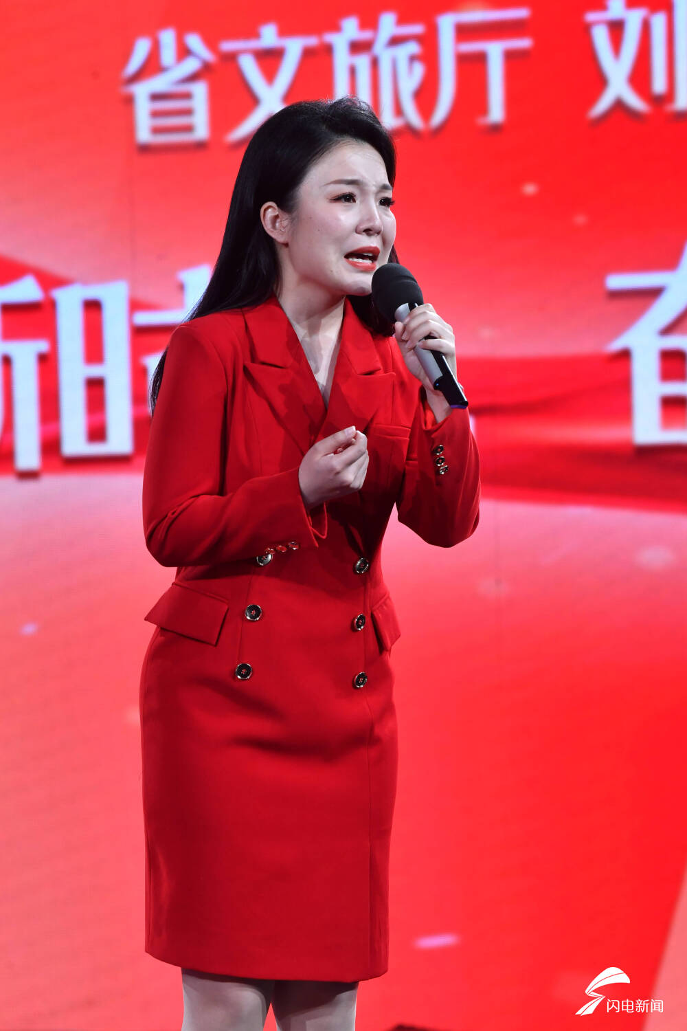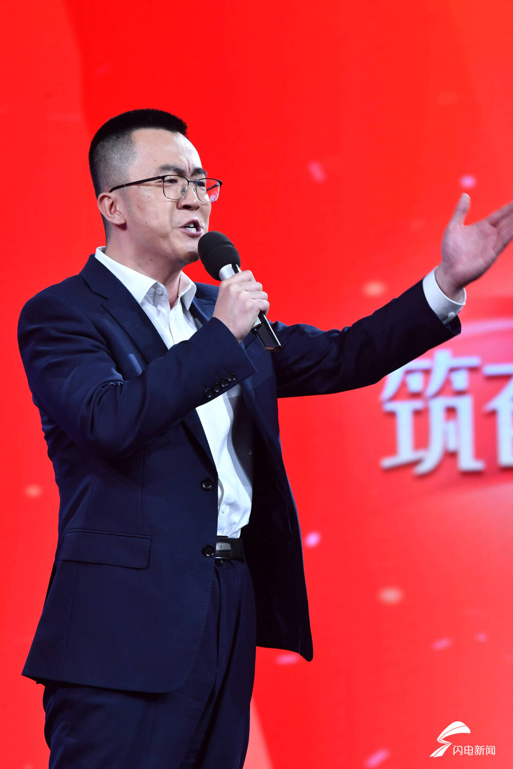 图为山东广播电视台选手朗诵《勇毅前行 逐吾之梦》