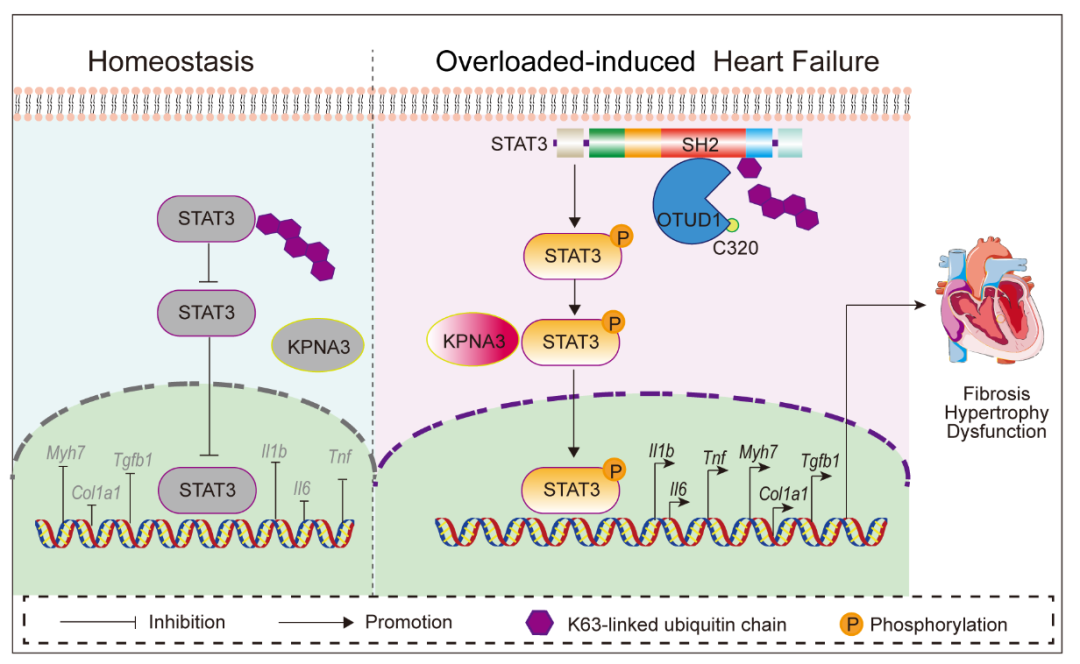 这项研究成果充分阐明了OTUD1在高血压心衰中的作用和具体作用机制。基于这些研究,从OTUD1特异性催化STAT3去泛素化介导高血压心衰的角度设计一些特异性针对OTUD1/STAT3复合物的小分子抑制剂防治高血压心衰,同时结合目前临床上的血压管理药物,可以进一步提高高血压心力衰竭患者的生活质量和改善预后。