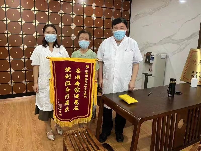 居民在治愈后向王平教授和其团队专家送来锦旗。