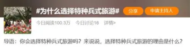 不少网友对视频中年轻人的青春活力表示羡慕,但也有部分人指出,过度的疲劳可能会损伤身体甚至引发疾病,得不偿失,走马观花式的游览方式,也让旅行失去原有的意义。行程紧、任务重,只看视频都觉得累的旅行安排,却引得如此多的人乐在其中——“特种兵式旅游”,究竟魅力何在?其实,早在一个多月前,一条大学生坐54小时硬座去拉萨的新闻,便打响了“特种兵式旅游”第一枪。