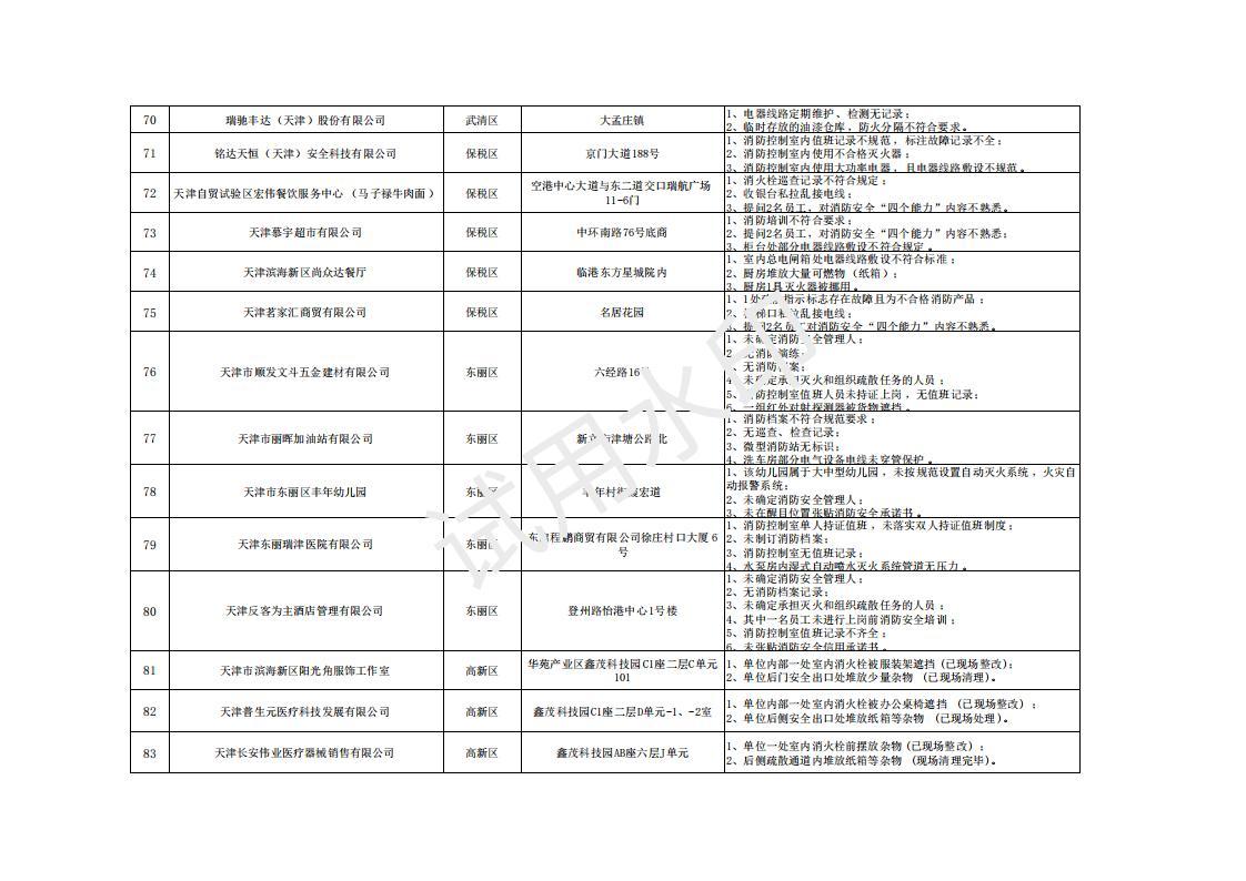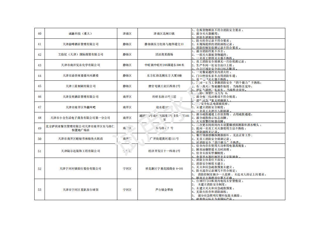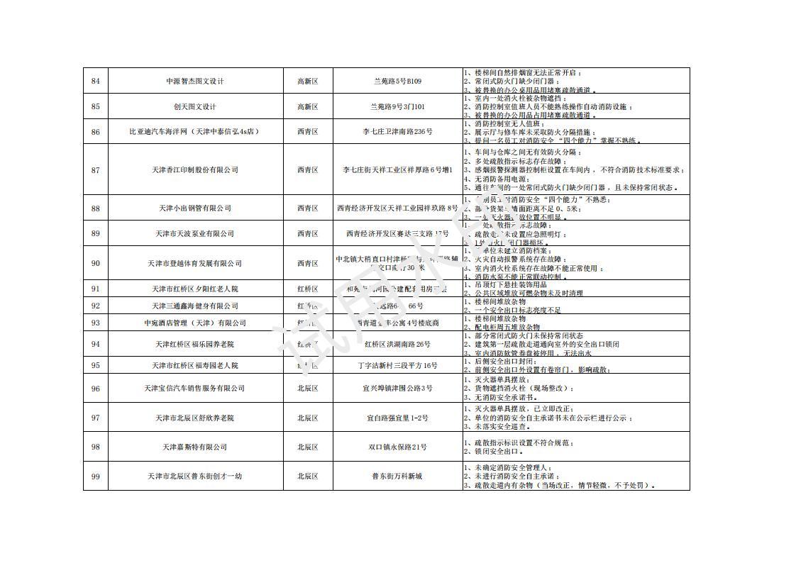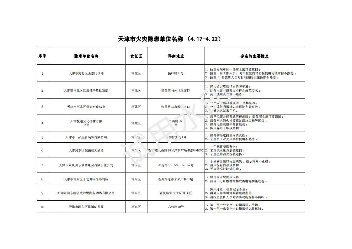 曝光!天津市火灾隐患单位名称(4.17-4.22)