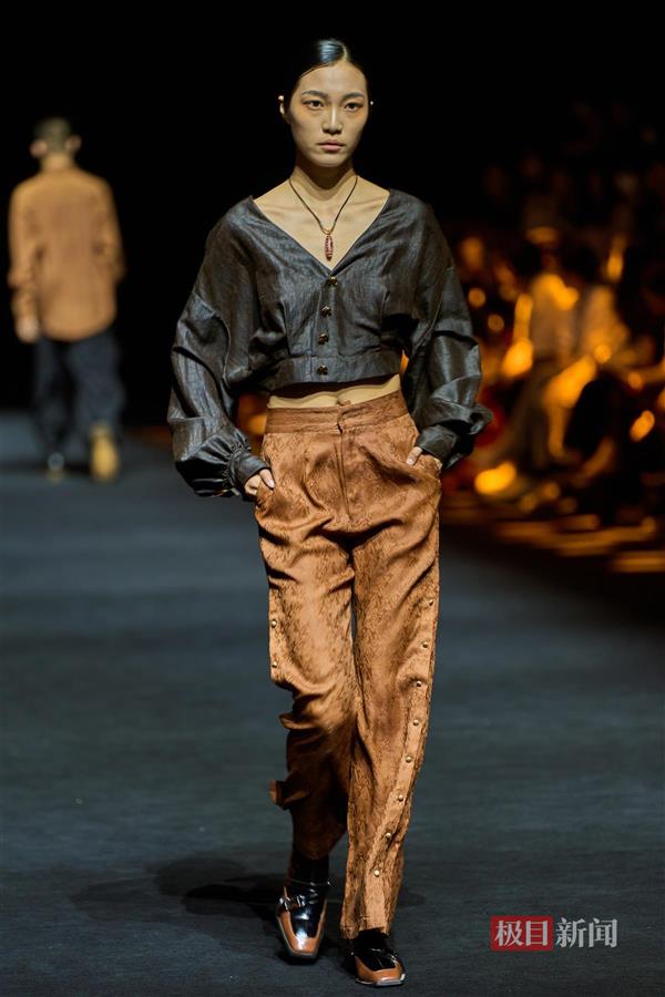 服装选用独具中国特色的香云纱为主要设计面料,并从香云纱的传统制作工艺和自然的精神内核中汲取灵感,将全球时尚与中国人的衣着审美相结合,营造出得体、舒适、轻松、雅致的着衣风格,彰显品牌“去符号,去繁复”的美学品位。