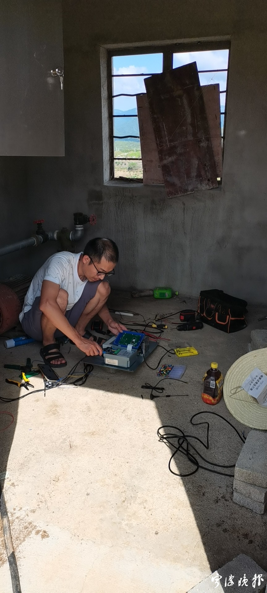 这些水站位于偏远山区,汽车不能到达的地方,张育斌要爬山查看建在山顶的水站。“只能趁周末、假期去看水站,最远的一次刷了3万多步,到家沾上枕头就睡着了。”张育斌了解宁波的水资源,也亲眼看到夏季枯水期,山区老太走上几公里挑水吃。