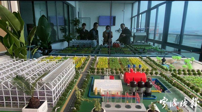 沙盘呈现了农田、果园、丘陵、温室大棚不同的灌溉系统。大面积平整土地采用喷灌;丘陵地带分层增压提水,自流喷淋于山野,也可以通过无人机灌溉施肥作业;温室大棚可以采用膜下滴灌,让水肥气直接作用于植物根部。