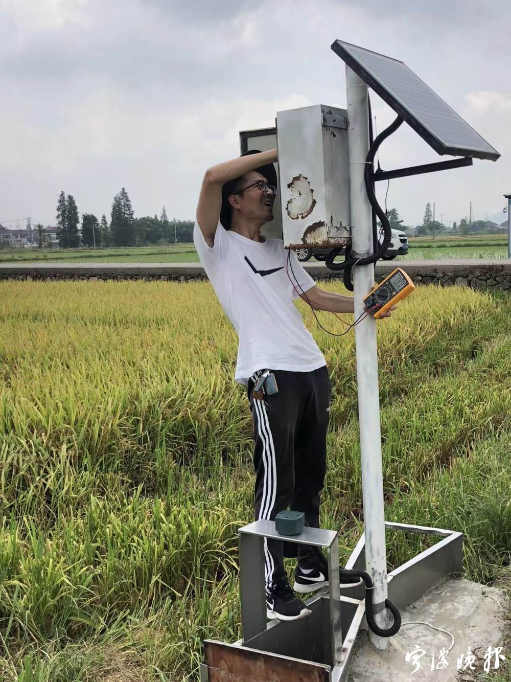 虽然是高校教师,但张育斌一年有四分之一的时间在乡野。“最忙的就是七八月份,最热的时候,我要带着团队到农田看设备运行。节水灌溉设备大多也集中在夏季施工,吃住在野外,团队小伙子、小姑娘顶不牢,中暑是常事。”张育斌告诉记者,他不光要查看农田灌溉设备。作为宁波市水利局专家,他还要巡访全市水站。