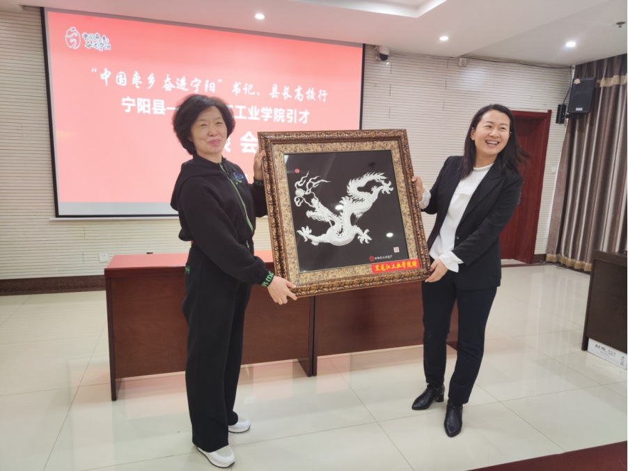 实地走访后,李玉杰等一行参加“中国枣乡 奋进宁阳”书记县长高校行宁阳县——黑龙江工业学院引才洽谈会。宁阳县副县长刘书花出席并致辞,县委组织部副部长、县人社局党组副书记、副局长李洪涛主持会议。