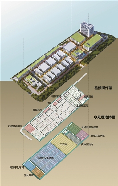 江北下沉式再生水厂分层效果图