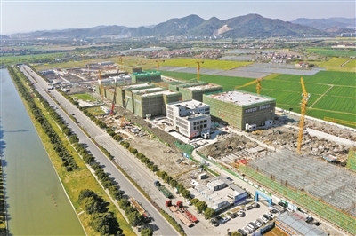 记者走近项目大门,宁波市水务环境集团高级工程师黄剑指着正在如火如荼建设的地上产业园区说,“这些建筑下面就是地下两层的下沉式再生水厂,该项目总投资11.93亿元,土建规模15万吨/日(设备规模10万吨/日)。工程于2020年9月开工建设,2022年6月底完成主体结构封顶,目前已进入试运行。”
