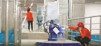 3月20日,江北下沉式再生水厂的工作人员正在地下巡检层进行设备巡检。记者从宁波市水利局了解到,由宁波市水务环境集团工程建设管理分公司承建的10万立方米/天江北下沉式再生水厂已试运行。
