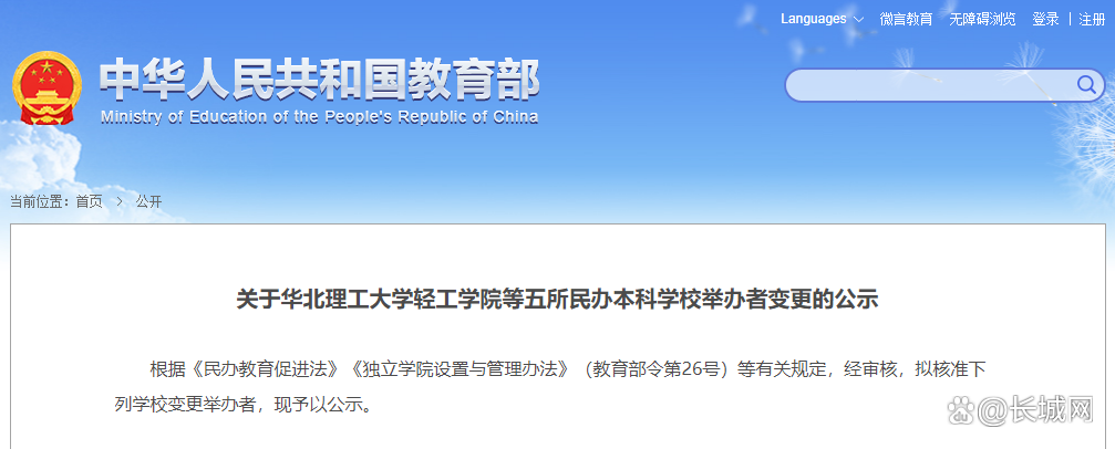 3月30日,教育部网站发布关于五所民办本科学校举办者变更的公示,公示时间为3月30日至4月13日,其中含河北2所学校,分别为华北理工大学轻工学院、河北经贸大学经济管理学院。