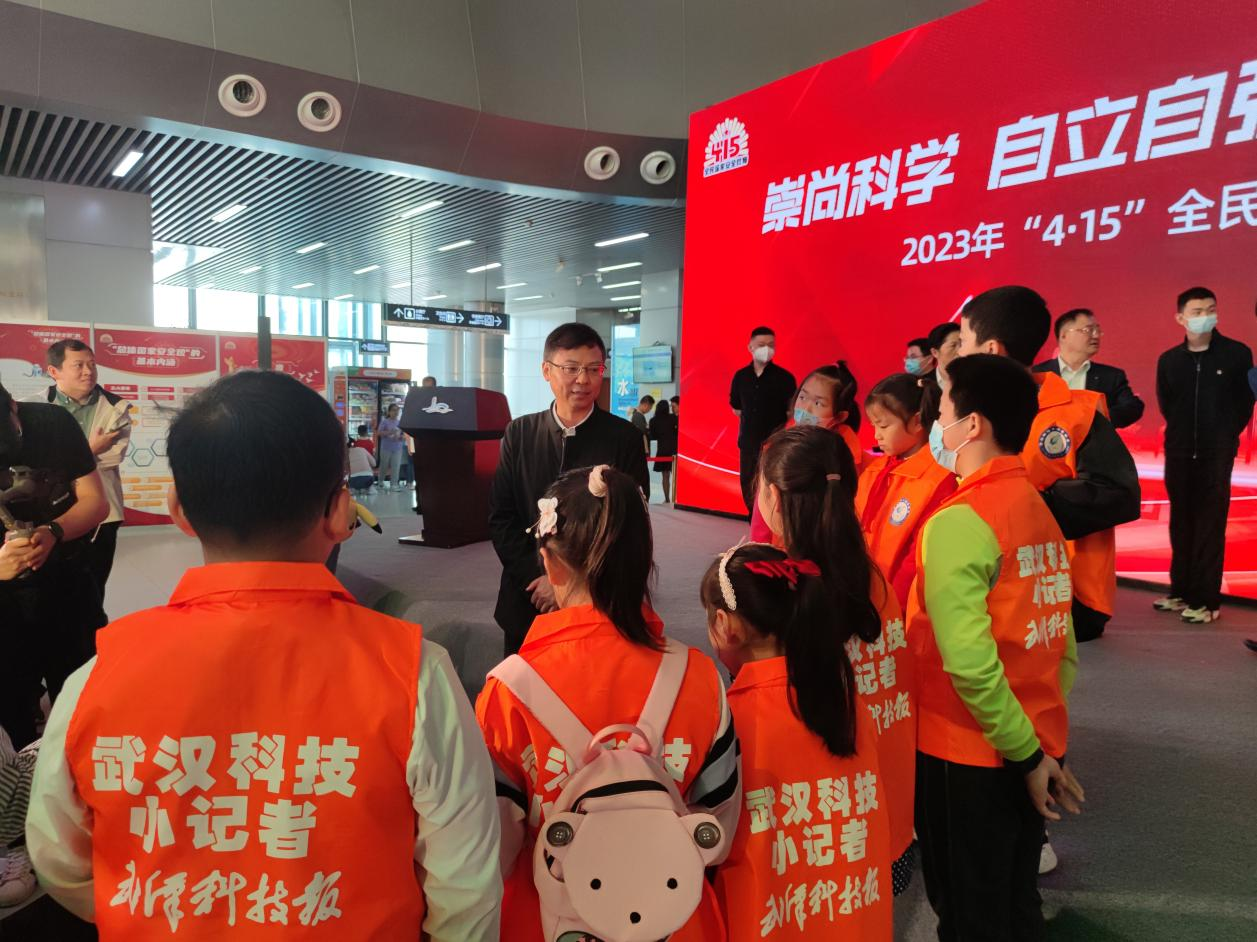 4月15日,由中共武汉市委国家安全委员会办公室、武汉市科学技术协会共同主办,武汉科技馆、武汉科技报联合承办,以“崇尚科学 自立自强 共筑国家安全”为主题的武汉市第八个全民国家安全教育日活动启动仪式在武汉科技馆隆重举行。8名小记者应邀和编辑老师一起采访,“橙马甲”们身后印的“武汉科技小记者”LOGO格外醒目。