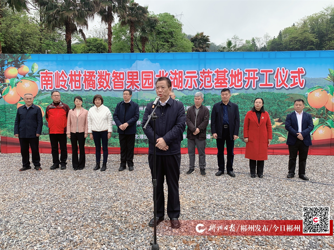 南岭柑橘研究院与郴州市万亩鲜生态农业发展有限公司合作的南岭柑橘数智果园北湖示范基地在同日开工。基地以柑橘文化为核心,以数智果园为平台,推动柑橘种植与乡村旅游、采摘体验等新业态融合发展。