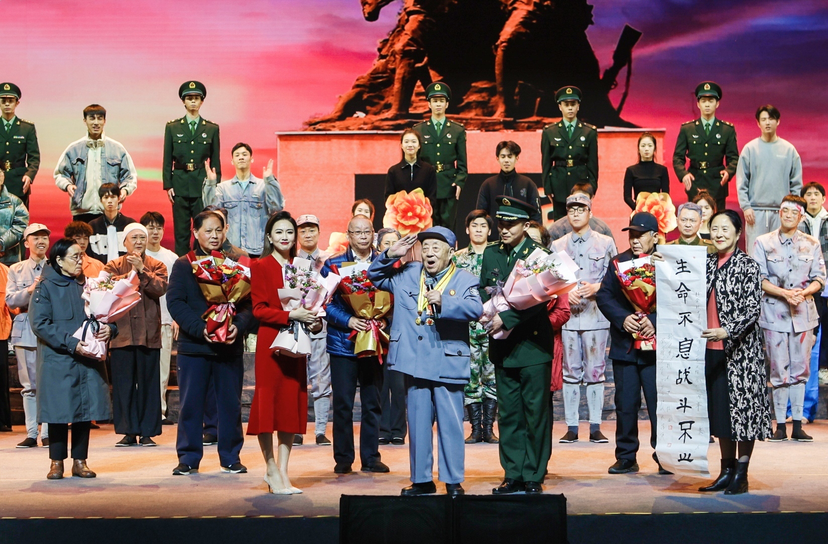 大型纪实情境剧《凝望》在淮安首演,令现场每一位观众都深受感动!其中,原中国人民解放军蚌埠装甲兵学院教授刘利华观看该剧之后,谈了三点感想:一是新四军刘老庄连八十二烈士虽然已离开我们80个春秋,但是,他们的英雄壮举和牺牲精神,永远是国家和民族的宝贵财富。二是全军以村庄命名的连队仅此一个。在阅兵方队中,刘老庄连通过天安门广场接受党和人民检阅,足以说明国家层面对这支英雄连队的肯定与认可。三是今天的幸福生活来之不易,没有历代革命军人的奉献与牺牲,就不可能有现在的和平环境!
