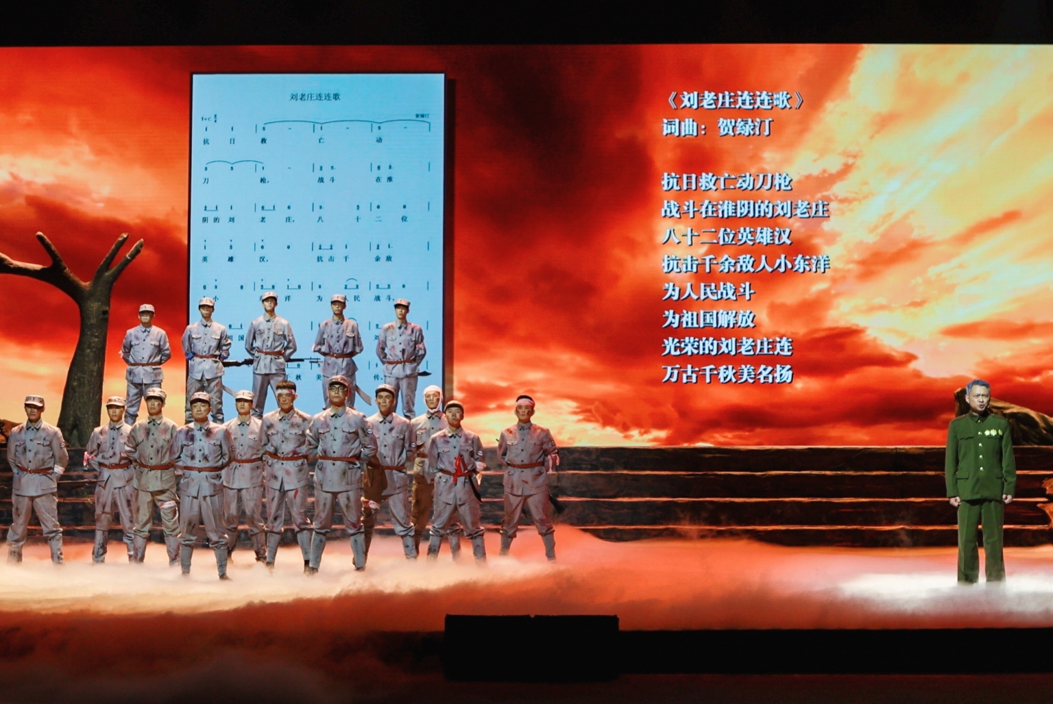 丹心照汗青,军魂铸盛世。为纪念新四军刘老庄连八十二烈士殉国80周年,一部震撼人心、感人至深的大型纪实情境剧《凝望》,于3月18日在淮安人民大会堂隆重上演。该剧在淮安首演,是向这段血与火的革命战争历史,表示最深情的凝望!是向抗战时期壮烈殉国的新四军刘老庄连八十二烈士,表达最深切的缅怀!