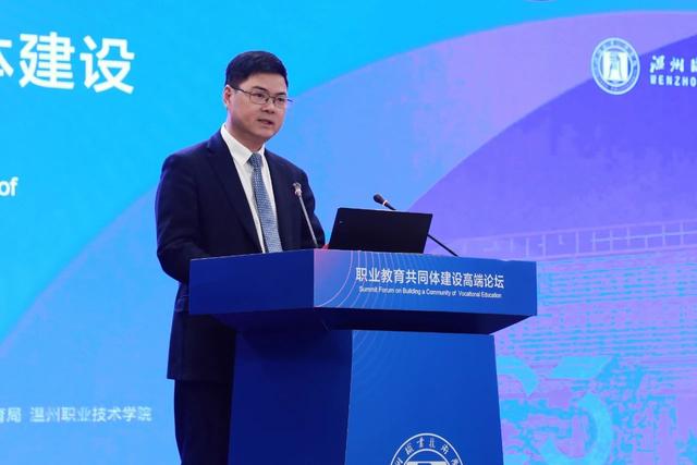 温州市人民政府副市长陈应许介绍了近年来温州职业教育发展取得的经验和成果。他指出,温州坚持把职业教育高质量发展与区域综合竞争力提升紧密结合起来,写好现代职教体系建设新模式、产教融合校企合作新机制、技术技能人才供给新结构“三篇新文章”。浙江省教育厅职业教育与成人教育处处长陈达在致辞中指出,近年来浙江省把职业教育摆在经济社会发展和教育改革创新更加突出的位置,成效显著,实现了高质量发展。