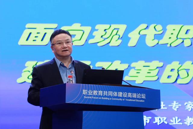 中国高等教育学会职业技术教育分会理事长周建松致辞时表示,职业教育共同体建设是推进现代职业教育体系建设改革的重要载体,对推进职业教育高质量发展具有重大意义。本次论坛是职教领域落实党的二十大重大决策部署的一项具体举措,也是职业院校落实《关于深化现代职业教育体系建设改革的意见》的一次成效展示,希望以此为契机,共同推动职业教育共同体建设的学术研究,推进职业教育共同体建设的实践探索,推广职业教育共同体建设的经验成果,为推动深化现代职教体系建设改革做出更大贡献。