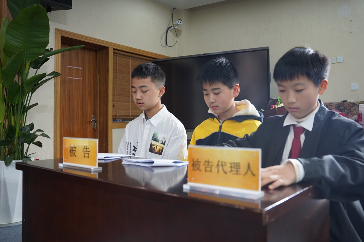 本次庭审的案件选取了贴近学生生活、具有代表性的青少年校园欺凌案件,采用逼真的场景,以案说法,庭审辩控。六年级四个班级的12位同学分别扮演法官、被告、原告、书记员、律师等人物,成功地模拟了因辱骂而产生校园欺凌的典型案件审理全过程,让同学们亲身参与到法庭审判之中,了解法庭审判的过程以及法庭的纪律,也让同学们见证了法律的威严,使同学们更加懂得了法律的公平和公正。