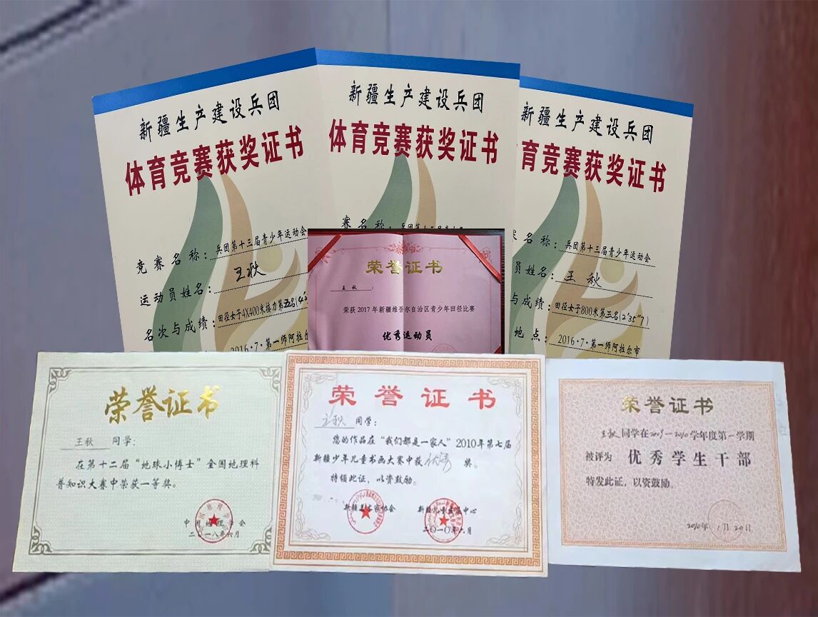 ▲王秋的荣誉证书