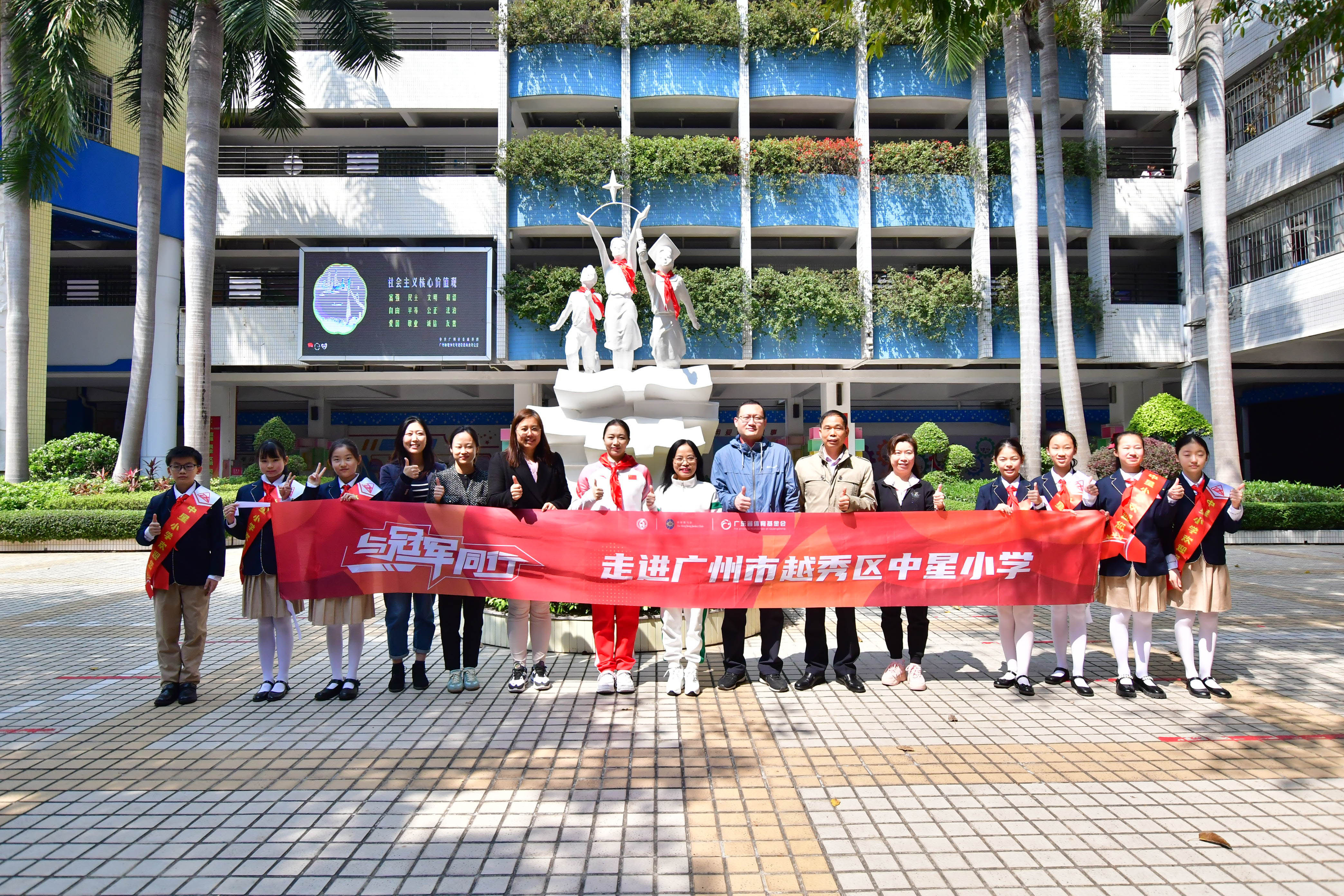 中星小学坚持以“立德树人”为根本目标,坚决落实“五育并举”,秉承“用爱做平凡事”的精神,注重学生的身心健康成长,是广州市心理健康教育示范学校。啦啦操是学校的传统优势项目,与体操奥运冠军、如今是中山大学体育老师的杨伊琳可谓“绝配”。“与冠军同行”以促进校园体育运动的开展、推动体教深度融合为宗旨,坚持“科学运动,健康生活”的根本理念,通过体育的力量,为全人教育高质量发展赋能,这也是活动第一次走进小学校园。