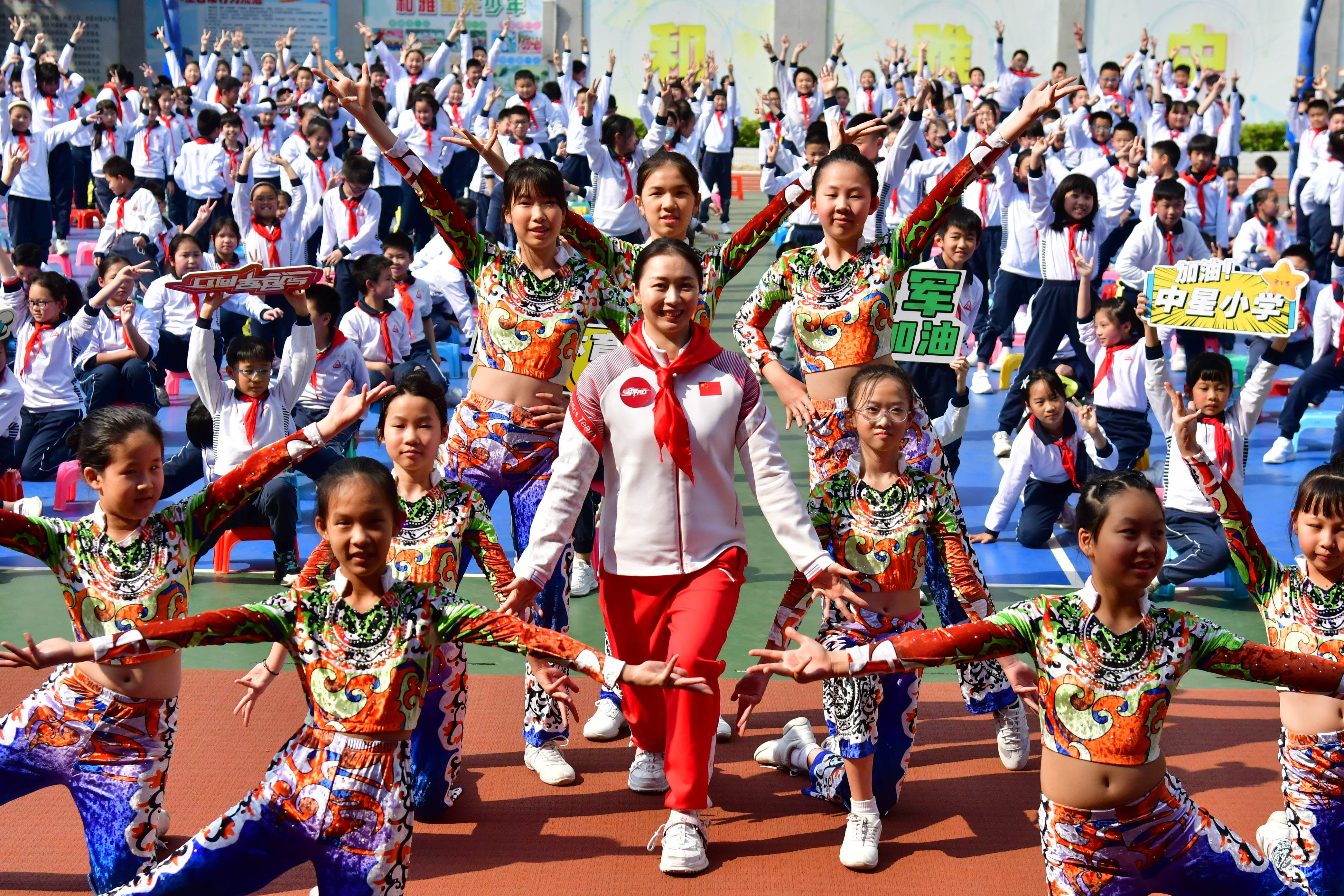 活动最后,杨伊琳与中星小学啦啦操队员们共同完成了一支“青春舞动”。中星小学的啦啦操队在各项活动与比赛中屡获殊荣,这不仅是他们自身努力拼搏的结果,也是学校推动体教融合发展的印证。