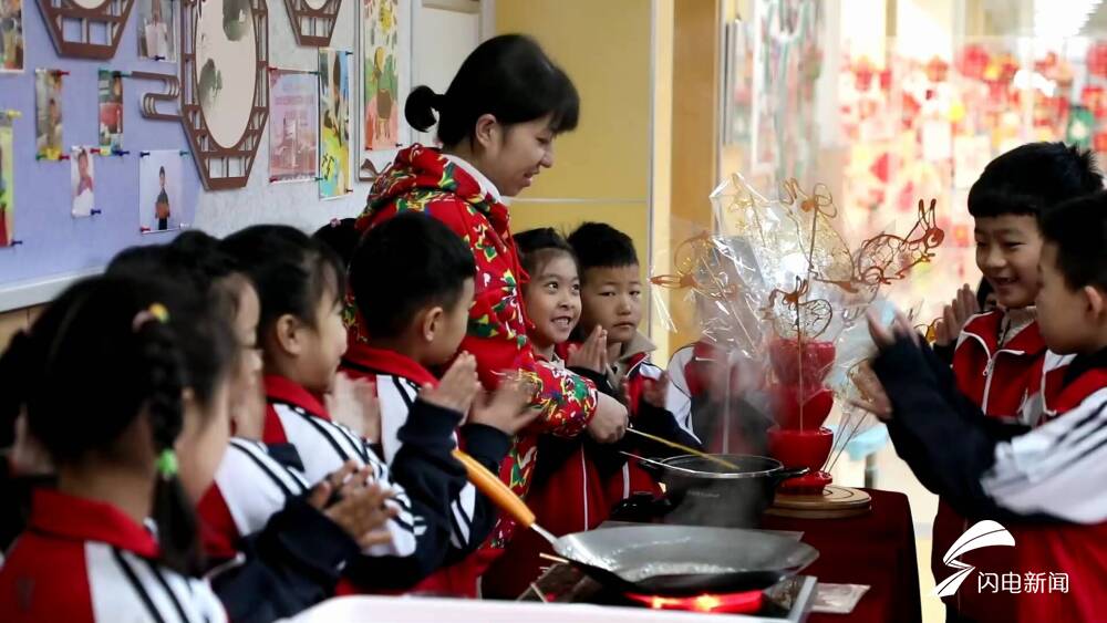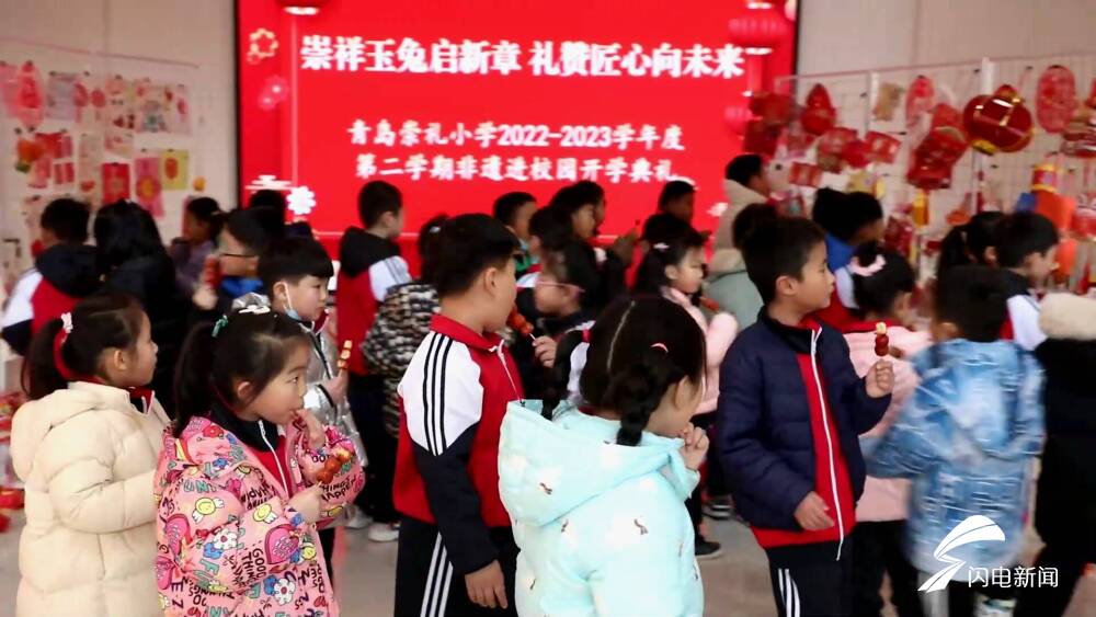 齐鲁网·闪电新闻2月6日讯 2月6日,青岛全市百万名中小学学生迎来春季新学期。当天上午,位于青岛市李沧区的青岛崇礼小学就举行了非遗进校园春季开学活动,丰富多彩的民俗体验,让同学们开心迎接新学期。