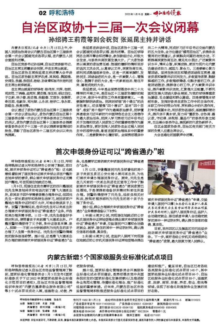 《呼和浩特晚报》来了!(1月16日)