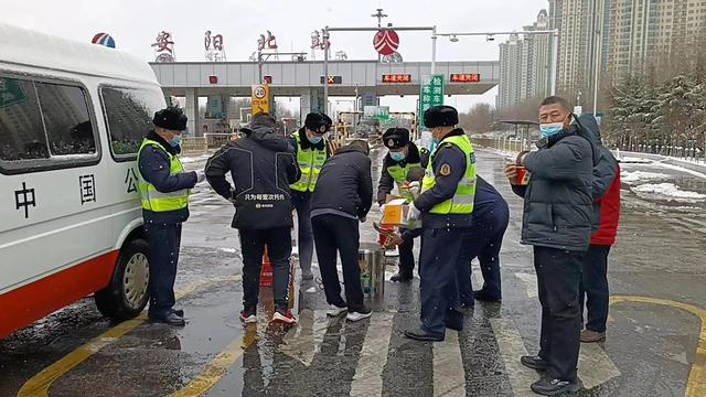 同时收费站组织在岗党员、预备党员,组成送温暖小组,向等候上站的司乘人员送去方便面、火腿肠、热水等食品物资,提供力所能及的帮助,司乘的笑容与肯定,也温暖了工作人员的心。