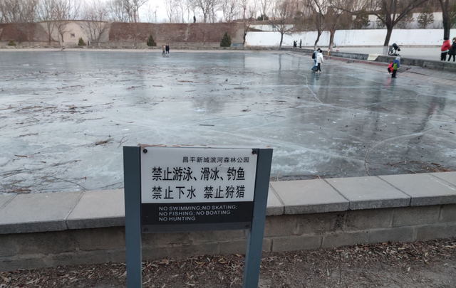 在北京,正规冰场都安排有专门人员留意气温变化,监控冰层厚度。按照北京市相关规定,冰层平均厚度至少要达到15厘米,才能允许游客上冰;当气温升高,冰层厚度不足,承载力有限时,冰场会暂停营业。