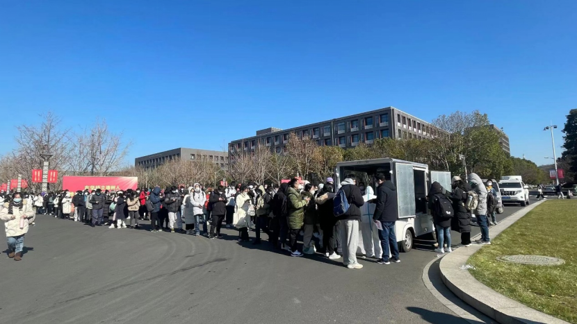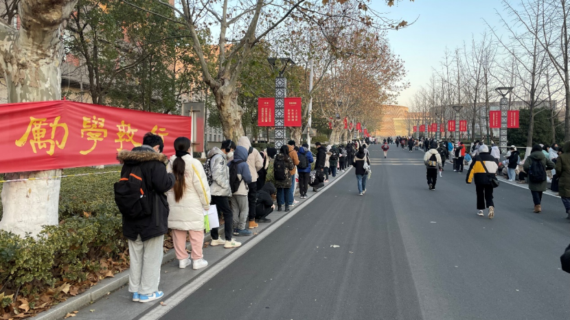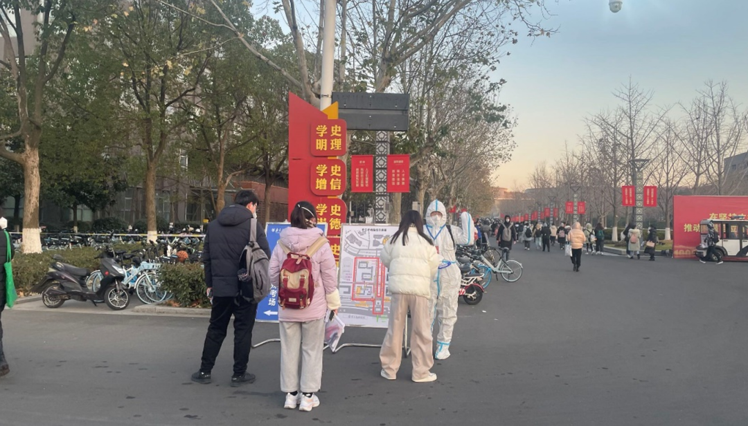 本着“以人为本,服务考生”的理念,考试前,学校通过研究生院主页、南大官微、“南大研招”公众号、“云逛考场”视频、电子展板、横幅等多种形式,及时将研考疫情防控及考试纪律等要求通知考生,并为考生提供细致的考前提醒和指导。考试当天,学校在校门处、校园内的主要通道设置了标识,并安排学生志愿者及时为考生提供咨询、引导服务,为考生提供便利;后勤部门在校门口和考试楼下免费提供姜汤为考生们驱寒,在严寒的清晨为考生带来温暖,仙林校区还设置了盒饭售卖点来满足考生的用餐需求。