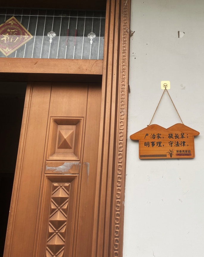悬挂在大门一侧的家风家训牌