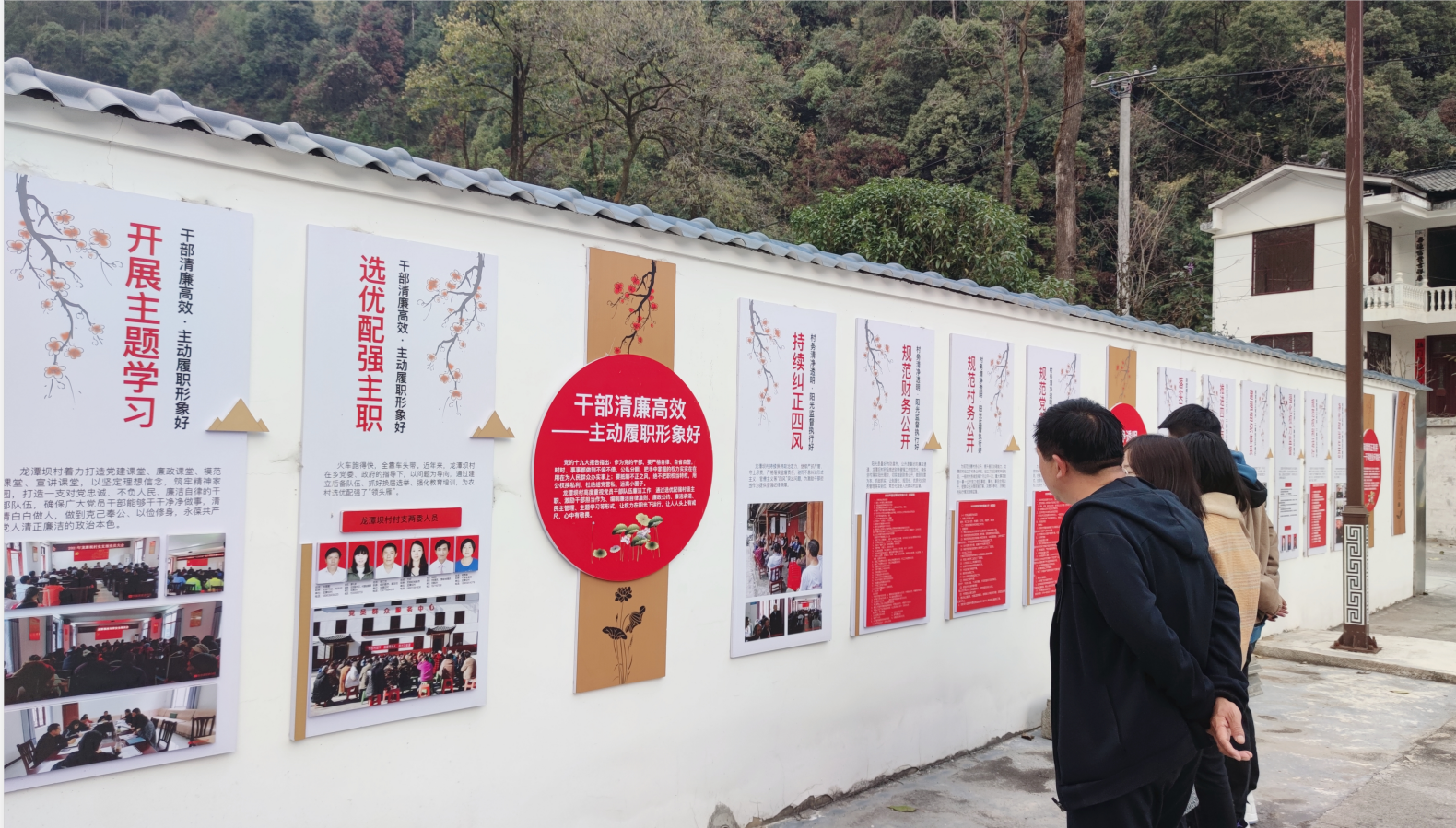制度清正、干部清廉、产业清明、村务清净、民风清朗的“五清”宣传长廊,向村民们呈现了一幅龙潭坝村清廉村居建设的崭新画卷。