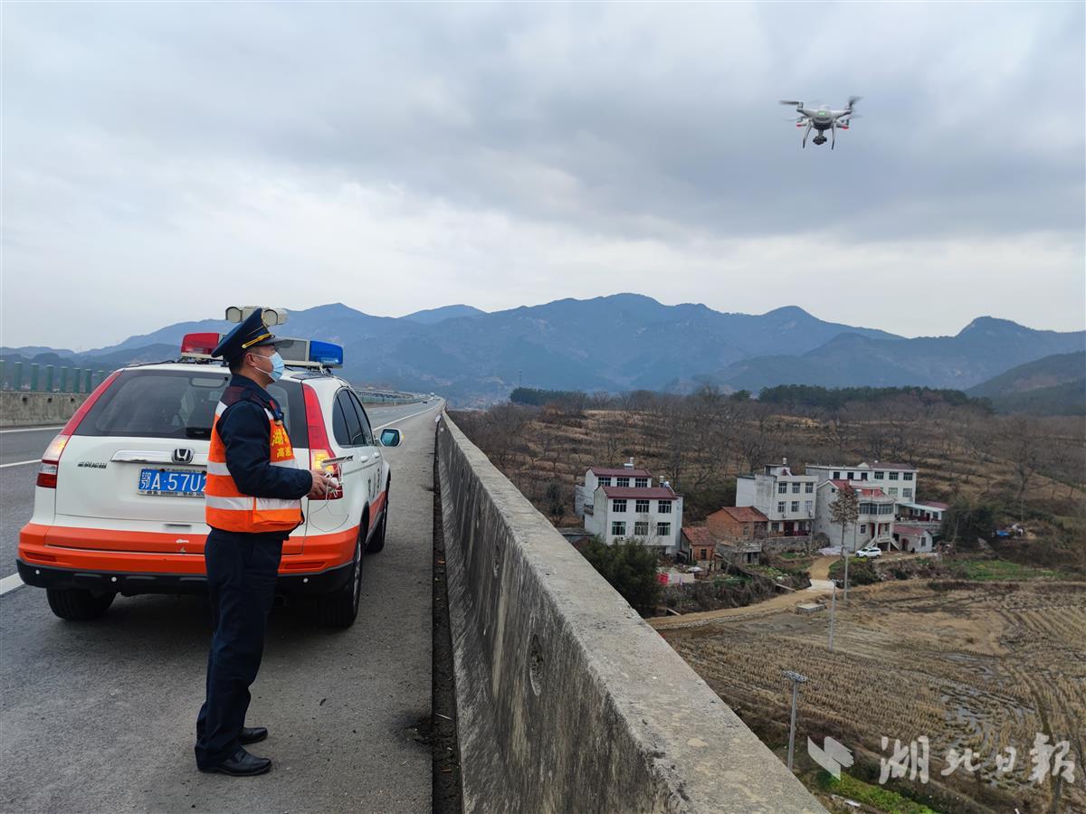 高速路政黄支队武英第一大队“飞手”孙晓虎仰头看着500多米高的无人机,屏幕上大件运输车辆运行情况一目了然……这是湖北日报全媒记者近日在麻武高速上看到的一幕。
