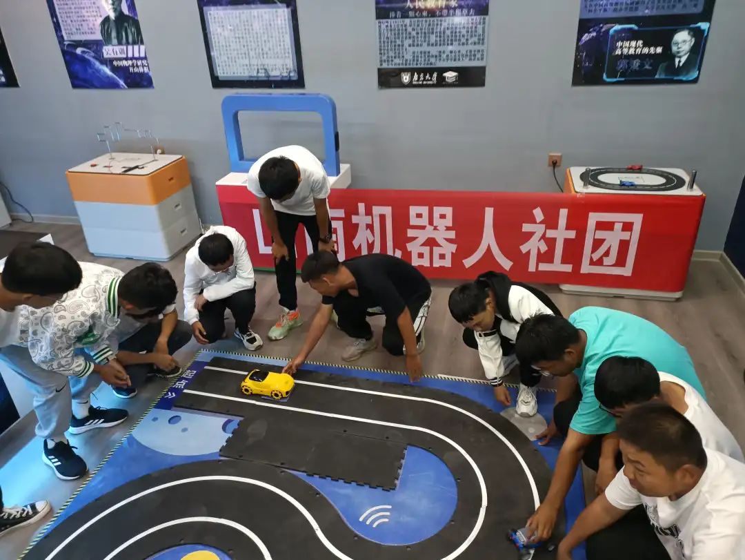 南大研支团志愿者为谭铁牛书记讲解科技馆设备