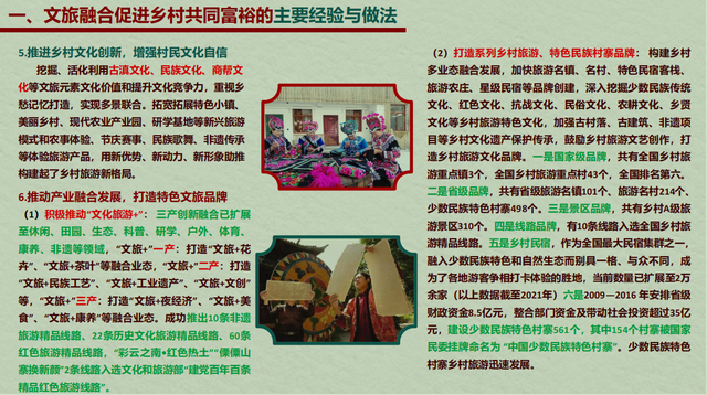 与第二产业的融合。农产品提供区域特有旅游商品,乡村传统手工业在为游客提供独特旅游商品时,也实现文化传承。