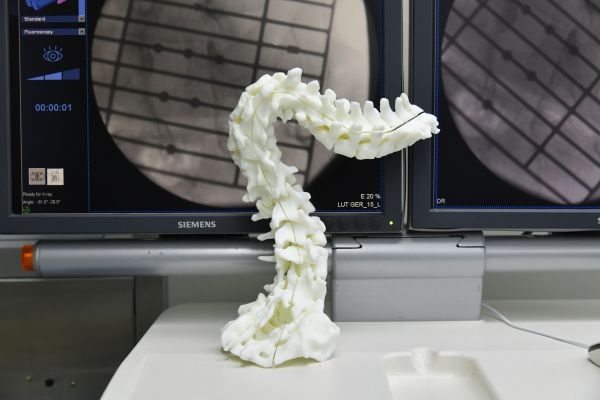 依照罗娜袜的病变脊柱制成的3D打印脊柱模型。