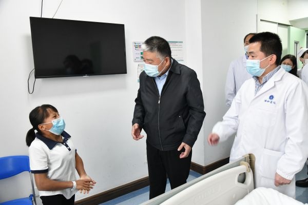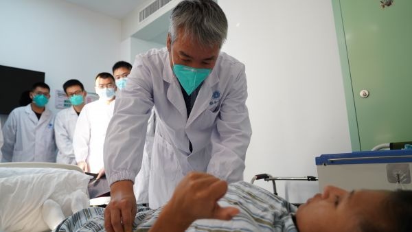 杨操教授查看患者术后恢复情况。
