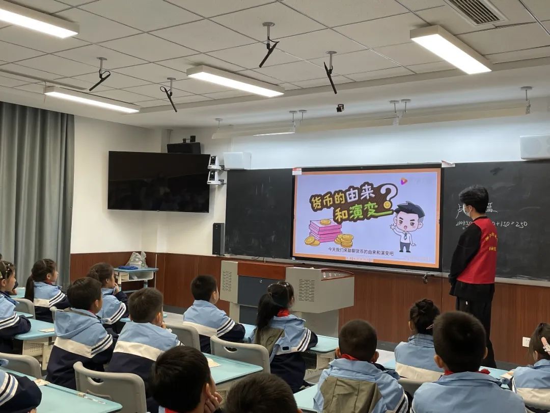 为丰富孩子们的党史学习教育,牢固树立防范诈骗的意识,11月22日下午,浙江财经大学金融学院学生志愿者走进杭州市文海凌云小学开展了一次为儿童普及金融常识,讲述货币背后党史故事的共育活动。